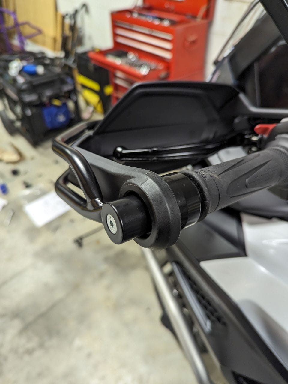 Completed installation of handlebar guards.