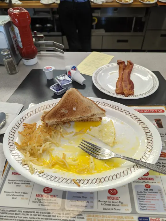 Before starting the ride, a good breakfast is always a good idea. I decided to stop at the local Waffle House and would meet Kirk here later. A great breakfast it was. When Kirk arrived, the temperature was high 50's with sunny skies. We had about an hour ride to the start of the route so we zipped up and headed out.