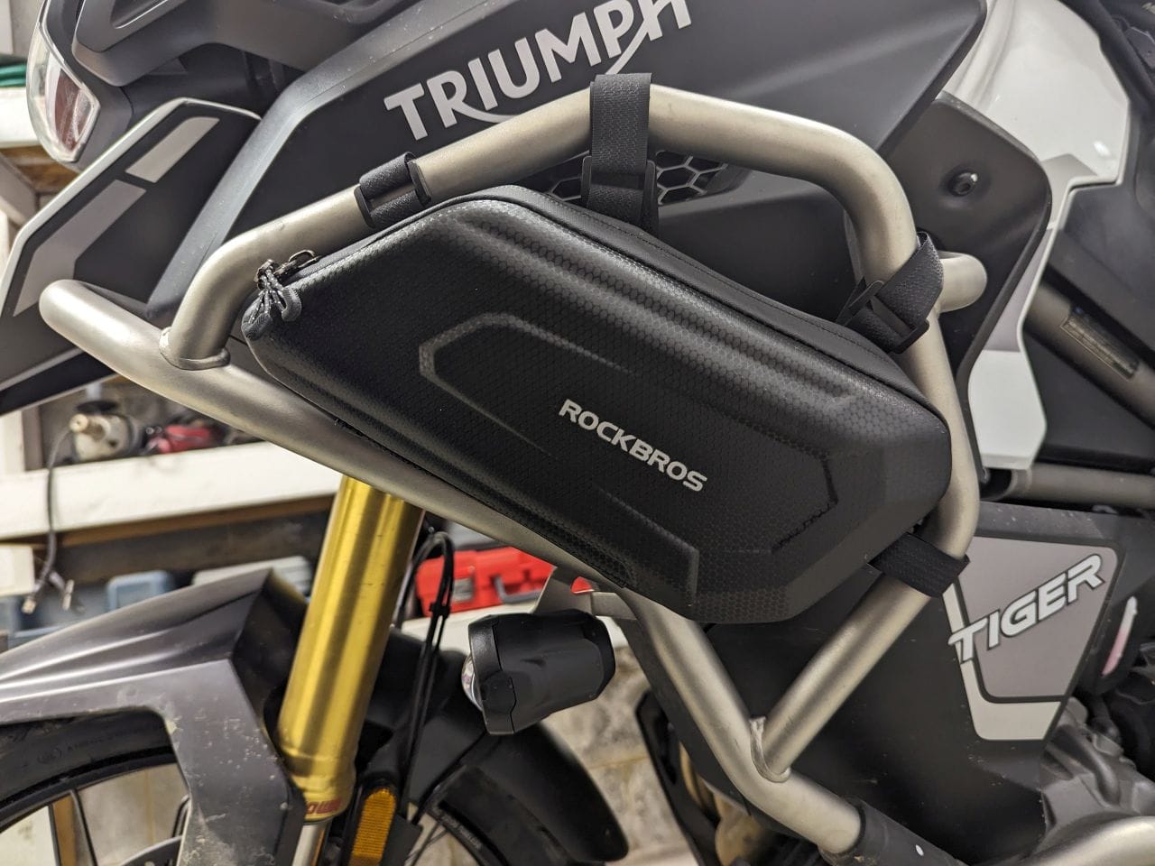 When I go my new Tiger 1200 Explorer, my Hepco & Becker tank bags would no longer fit on the engine guard correctly. I could probably make them fit but after inspecting one of my bags, I decided to see if I can find something else (one of my bags has a huge tear where it hangs onto the engine bar - too many drops I guess).