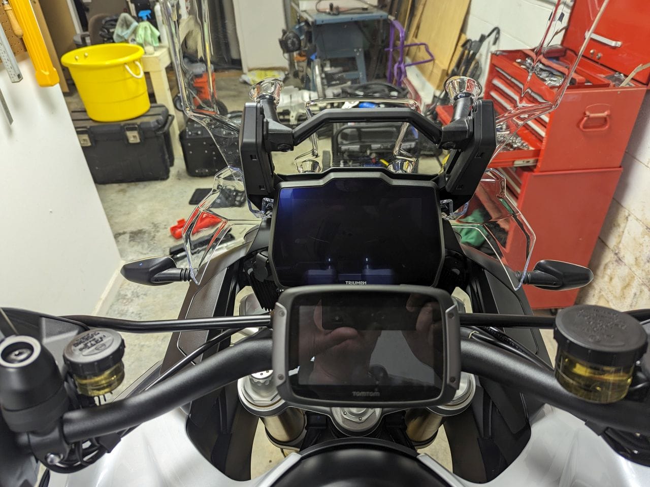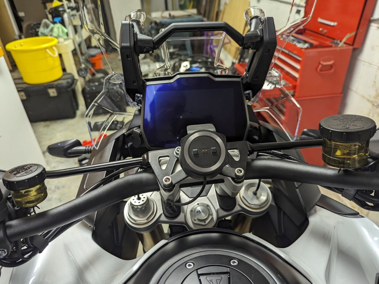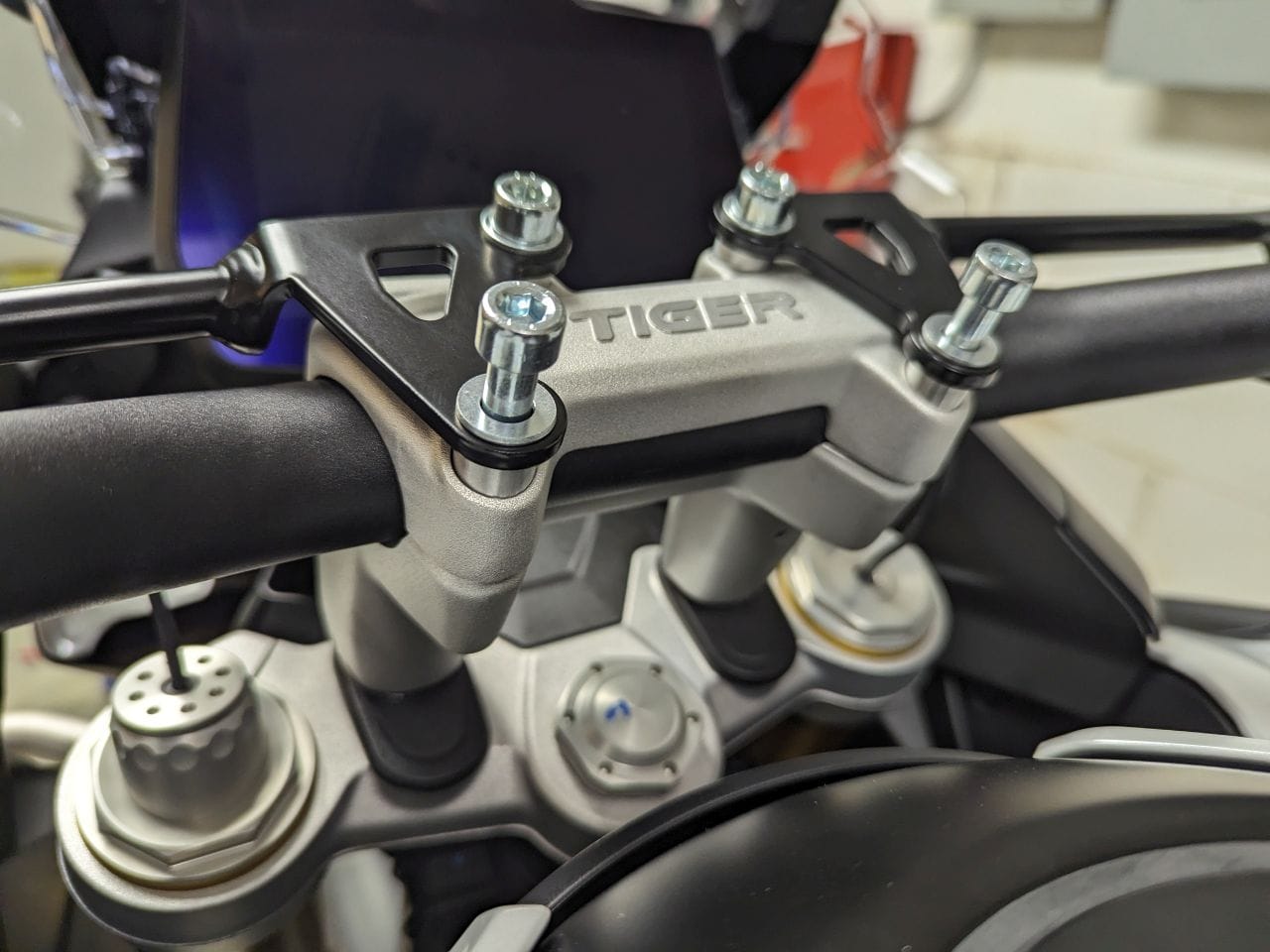 With the new 2023 Triumph Tiger 1200 Explorer, the handlebar stem is vastly different. On my Tiger 900, I mounted the GPS in the middle of the handlebar stem so it was centered and easy to view while driving. The 1200 that is not possible since the handlebar stem is a single piece.